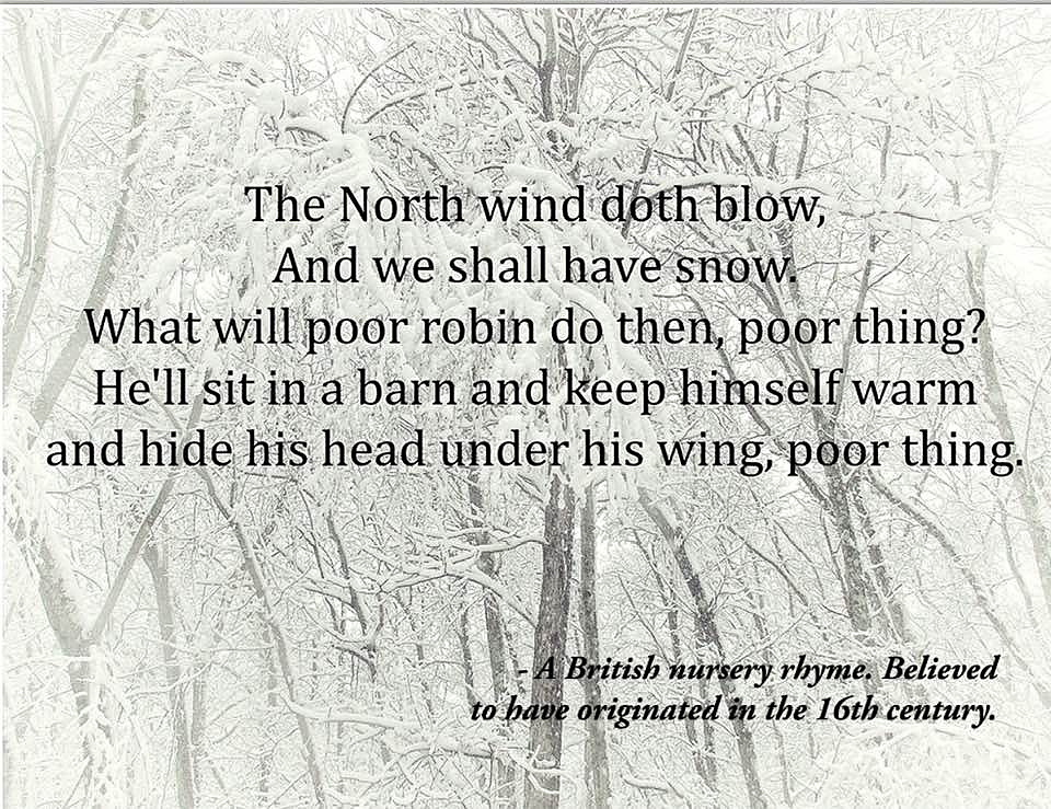 The old saying is that it will snow on the robin's tail three times before spring is sprung. My mum, however, upped the number to 7 being that we live in Nod.